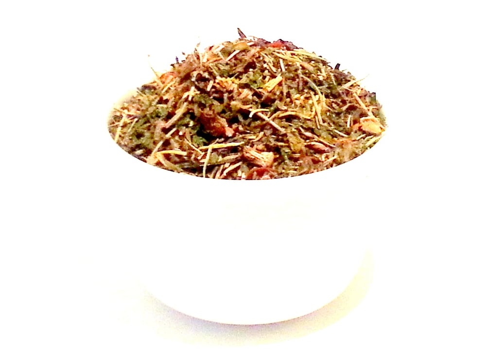 Contains: Green Roobios Tea , Red Clover Blossom, Plantain Leaf, Red Rasberry, Peppermint